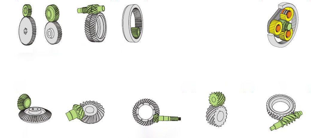 Шестерни представляют собой системы из двух зубчатых колес, которые входят в зацепление друг с другом с функцией передачи вращательного движения одного механического элемента (ведущего или ведущего вала) на другой (ведомый вал) с заданным передаточным числом. Шестерни обеспечивают безопасную и точную трансмиссию с высоким КПД в случаях, когда требуются изменения скорости или увеличение крутящего момента, как правило. Они также легко выполняют функцию изменения скорости, когда находятся между ведущим двигателем работающей нагрузкой.